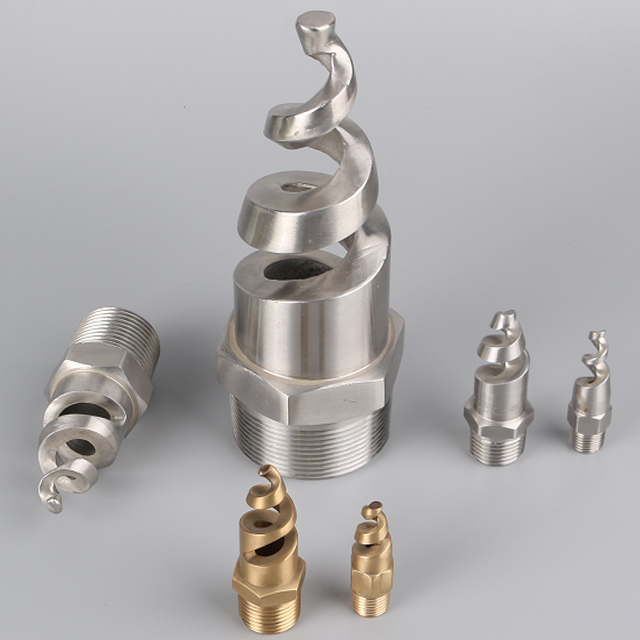 螺旋噴嘴屬于壓力式噴嘴,它的霧化是能量作用在液體束上的結果。主要由液體切入、液體旋轉室、噴嘴孔等組成。