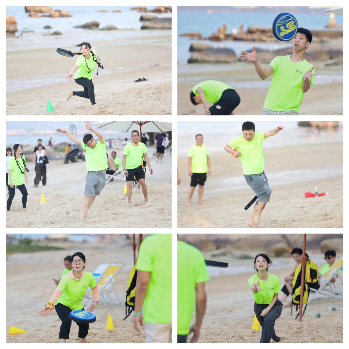 沙灘飛盤:各隊戰術頻出,精準投擲與靈活走位引來圍觀同事的吶喊助威;