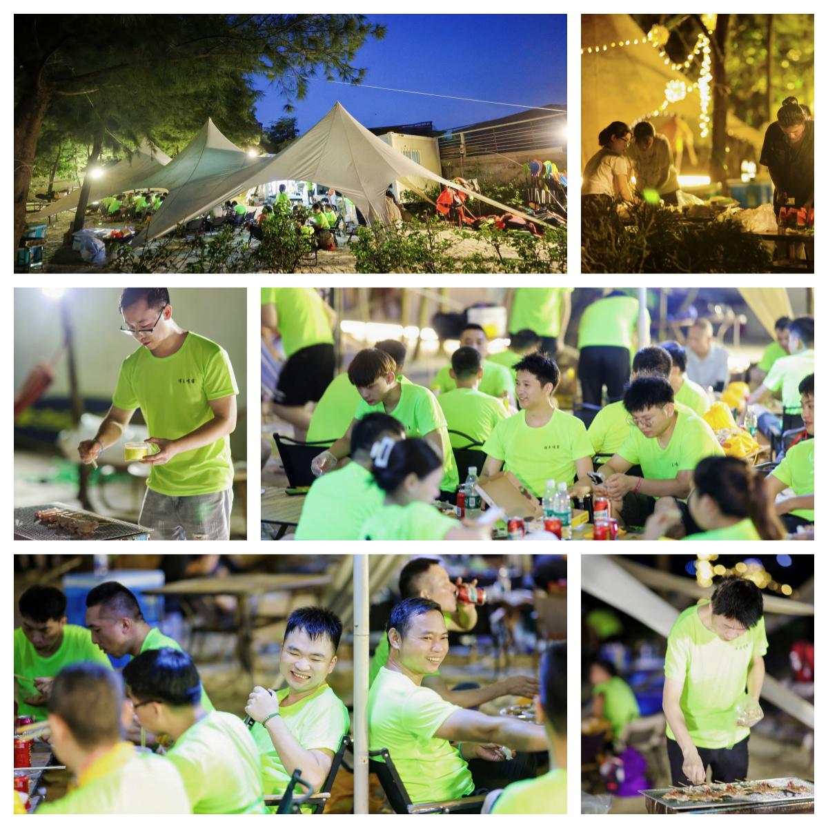 夜幕降臨后,營地亮起星星燈串,炭火上的烤肉滋滋作響,同事們舉杯暢飲,戶外KTV更成為"麥霸"們的秀場——從經典老歌到熱門rap,歌聲與掌聲回蕩在海濱,將一天的疲憊化為酣暢淋漓的回憶。