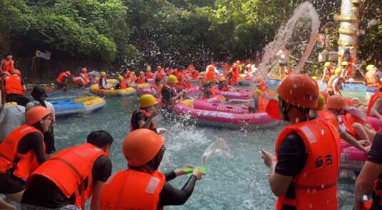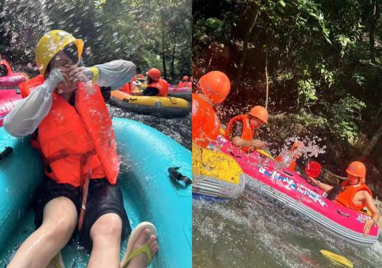 快樂的團建怎么少的了清涼一夏的漂流活動!品嘗了清遠雞等當地特色菜后,我們抵達了此次團建第二站--清遠古龍峽。為了此次漂流活動,有的自帶水槍,還有的自帶水瓢,都躍躍欲試準備打一場酣暢淋漓的“戰爭”!