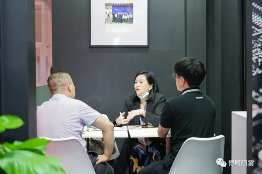 展會現場一直人氣旺盛,噴霧展示區人流絡繹不絕。眾多客戶經過洽談交流之后,更深層次了解并認可了博原噴霧及松下電器最新的推出市場強力霧化加濕系統,并表達了強烈的合作意向。此外,展位現場,還吸引了不少媒體前來拍攝采訪!