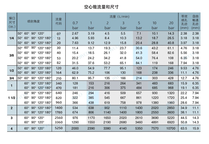 內部為大流量通道設計,最大程度地減少液體阻塞。螺旋噴嘴產生實心(空心)錐形噴霧,液滴相對較為粗糙。