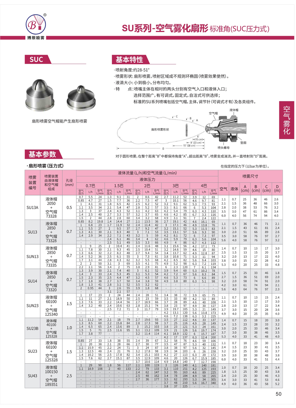 噴嘴主體在相對(duì)的兩頭分別有空氣入口和液體入口,選擇范圍廣,有可調(diào)式、固定式、自潔式可供選擇。