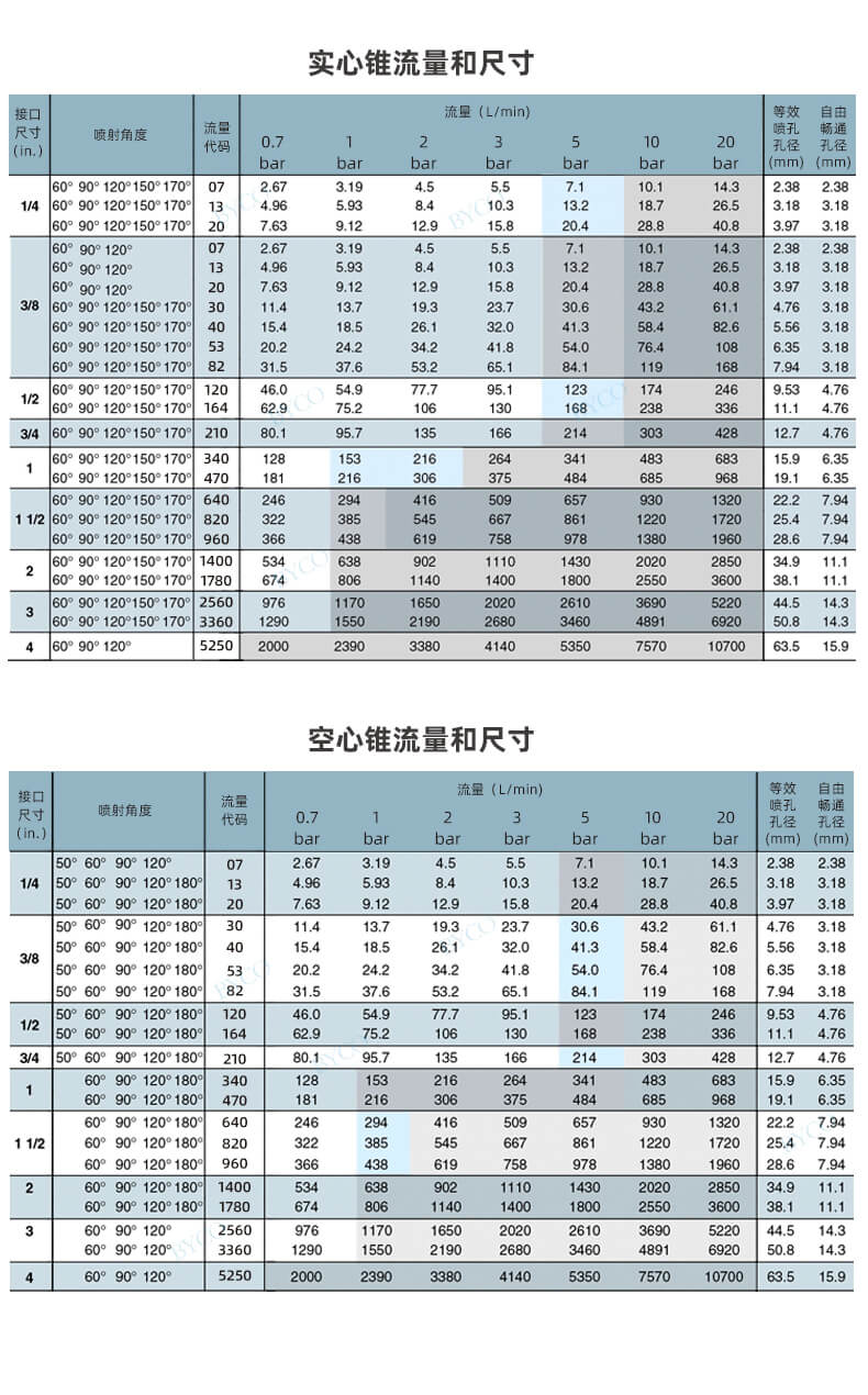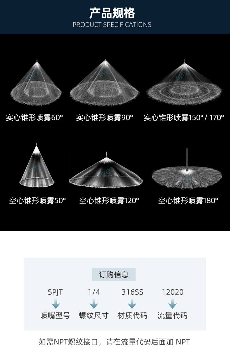 實心(空心)錐形噴霧,噴射區(qū)域成圓形(環(huán)形)。