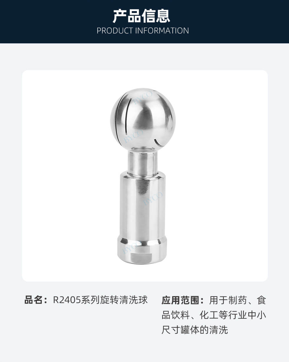 特點:固定式,用戶直徑達1.6米的槽罐,噴嘴固定,清洗或漂洗小容器的效果理想,多孔噴射,噴射的覆蓋面和形狀有多種選擇。耐用、抗腐蝕設計。