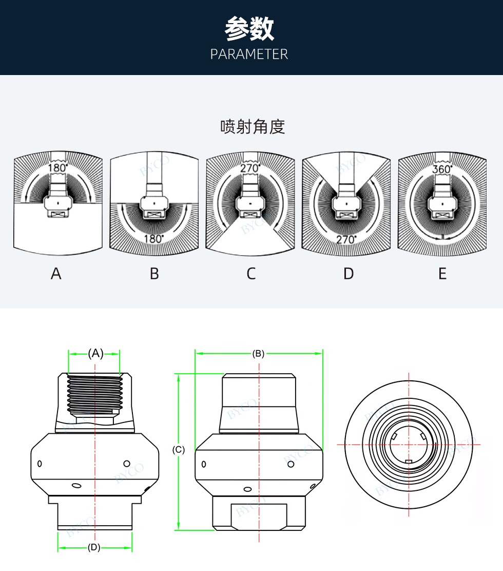 噴射覆蓋面:向上或向下180°或360°